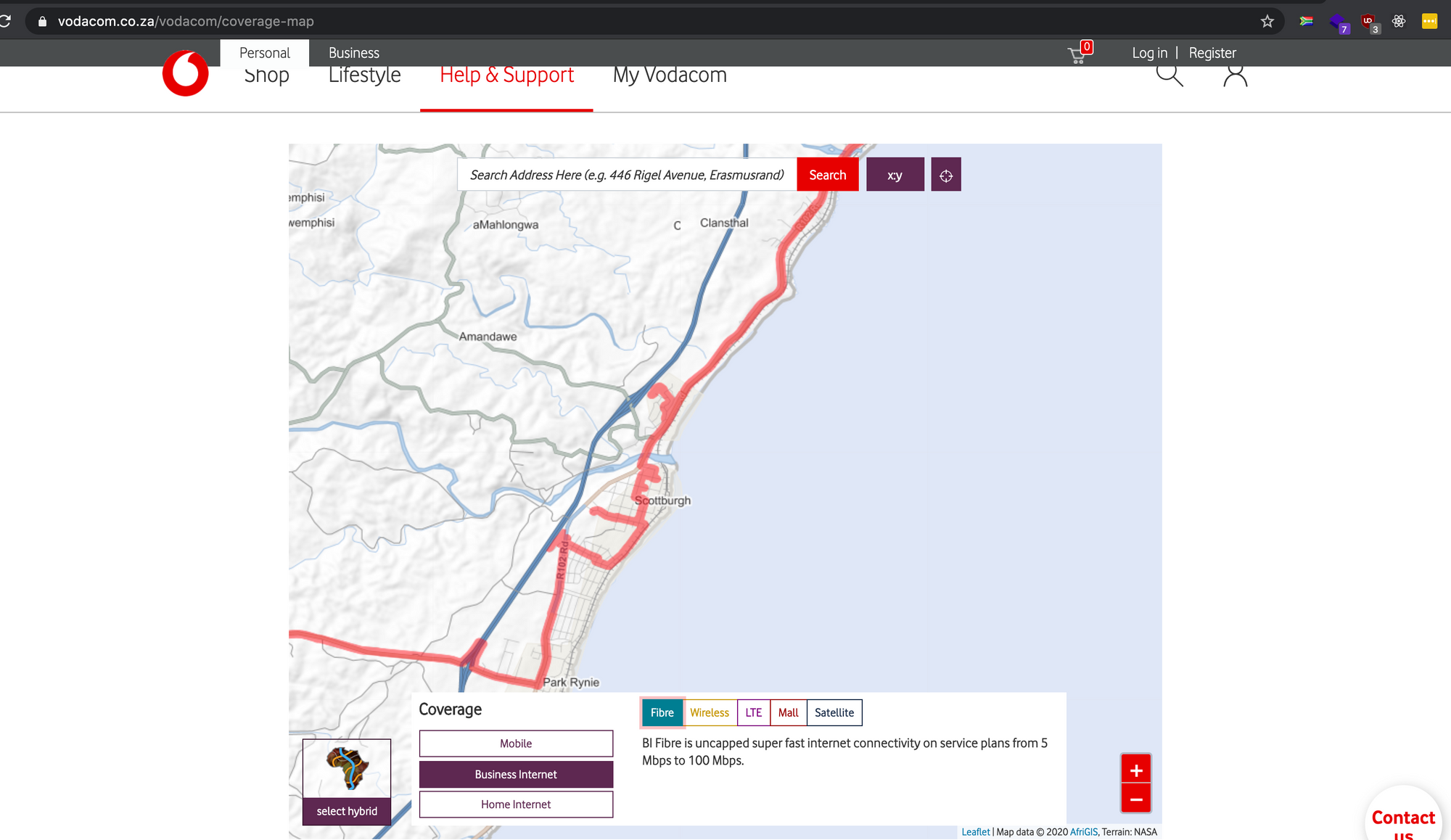 I was literally browsing all major providers’ websites, both fixed and mobile, and especially coverage maps where you’d go to your address and it shows what’s available and what is not. It wasn’t until I browsed on Vodacom’s coverage map and clicked on the business fibre and saw a red line going past our house.