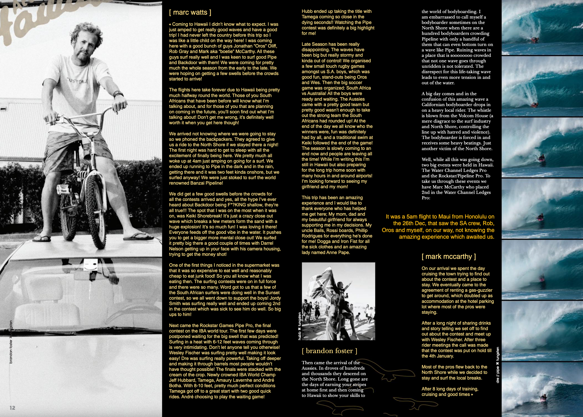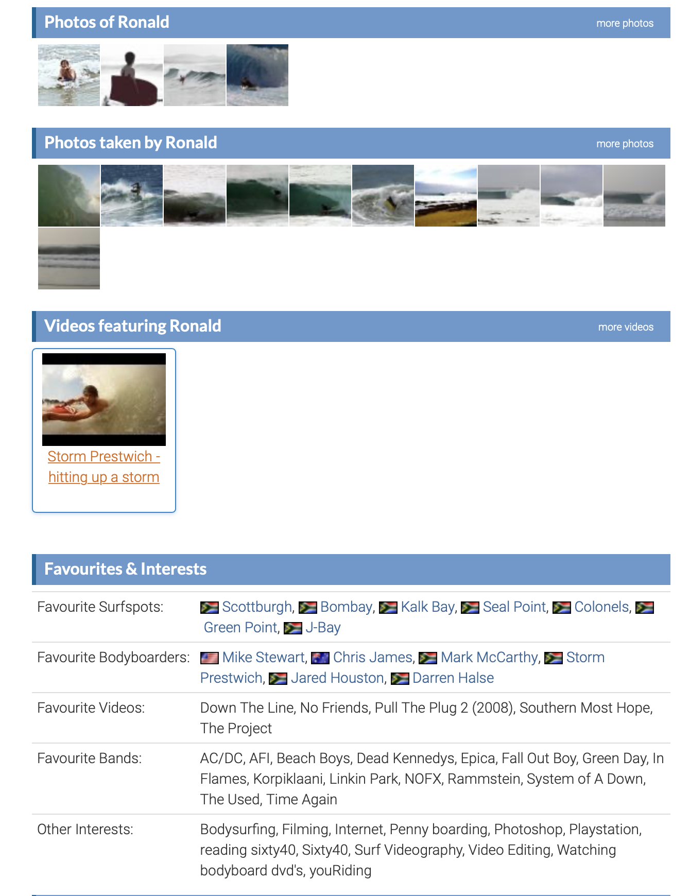 - Recognised and respected by many bodyboarders not only in South Africa, but around the world. Large number of superfans, including myself, who'd be willing to contribute.