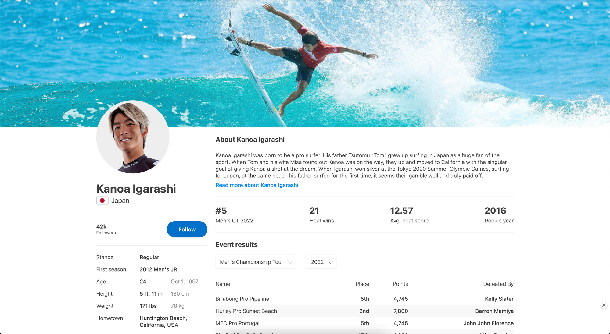 I'd definitely take inspiration from the WSL profile page and give every user access to setup and create their own profile pages. I'd keep it clean and simple and perhaps prioritise of the use of photos and mix in some of the trival data points from Sixty40's profile page.