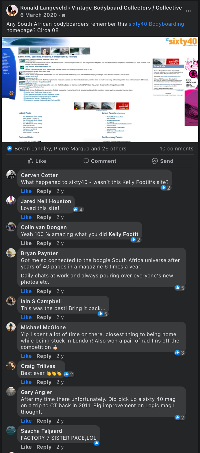 But at the same time, bodyboarding has that low profile, underground, wants to be unique kinda vibe to it, that makes it the perfect candidate to go independant, away from big corporate platforms like Facebook, Instagram, etc, perhaps what made Sixty40 a successful community website for its time.